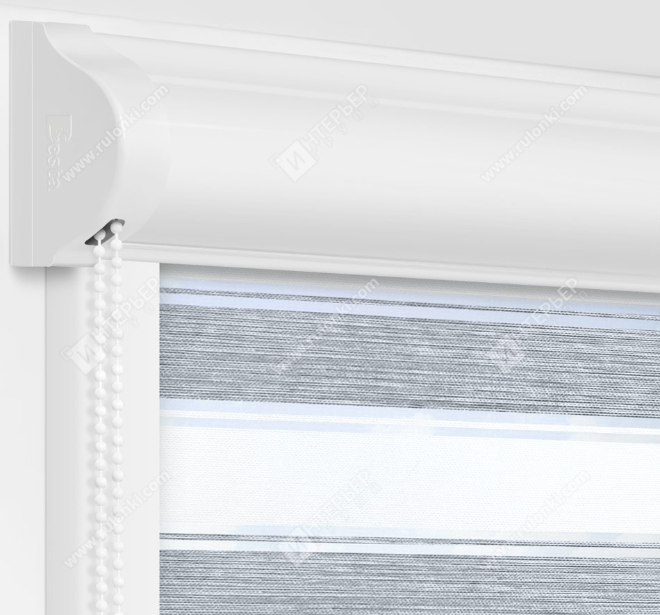 Комплектация: кассета (короб) с тканью и цепью управления, боковые направляющие, фиксатор цепи и системы крепления – без сверления (на двусторонний скотч) или на саморезы. По умолчанию - цвет фурнитуры белый.